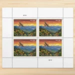 The new Priority Mail Express? stamp celebrates the beauty of the Great Smoky Mountains. The Smokies are home to extensive national lands and a vast array of native plants and animals. The stamp art captures an iconic mountain scene located near Newfound Gap between Gatlinburg, Tennessee, and Cherokee, North Carolina. In the foreground, a red-tailed hawk flies over the landscape.
