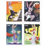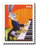 About the stamp designs: Features Bugs Bunny as a piano player, with artwork from Warner Bros. animation artists.