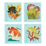 Celebrate the beauty and wonder of coral reefs with four new postcard Stamps from the U.S. Postal Service?. Featuring highly stylized digital portraits, the stamp art depicts four types of stony corals with associated reef fish.