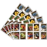 About the Fruits and Vegetables set:??Includes 10 different Stamps designs all picturing a different fruit or vegetable still life by Robert Papp.