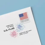 Crafted by artist Hong Li, the stamp showcases a graphic interpretation of Old Glory. Below the flag, the word “FREEDOM” stands out in an elegant gray font.